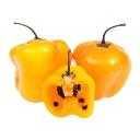 Chile carnoso, bulboso y semicónico, de color amarillo intenso y forma fresca ,se caracteriza por tener semillas negras rugosas,